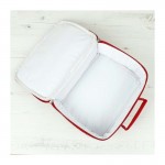 Interiorul prezinta un compartiment dedicat, captusala este rezistenta la apa, iar geanta poate fi purtata de maner.